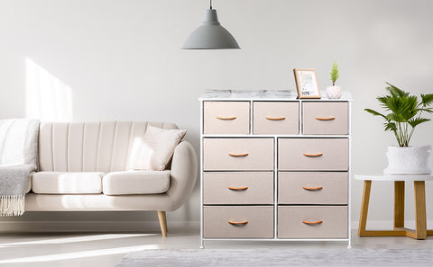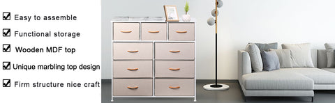 Color: Black , 9-Drawer; Wooden MarblingTop & White Frame